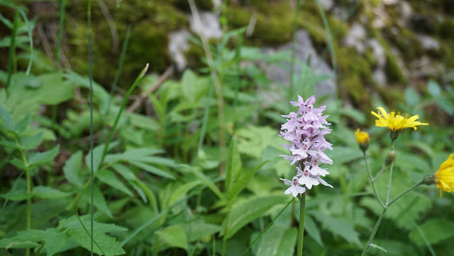 eine grosse strecke ging es auf einem langweiligen geschotterten fahrweg bergab, immer wieder sahen wir kleines oder purpurknabenkraut am wegrand.